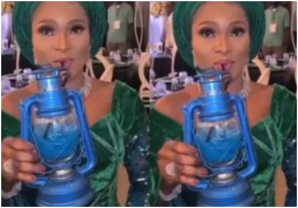 A lady at an event raised eyebrows on all social media platforms when she was caught using the lantern to drink a cocktail.