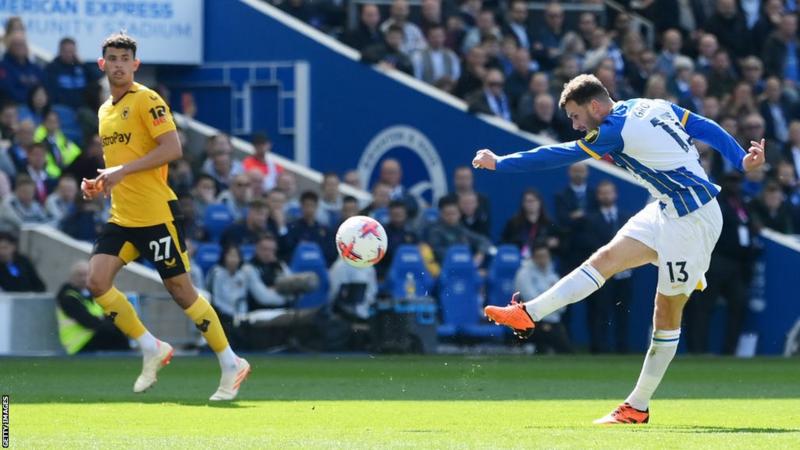 Gross doubled his personal tally in sensational fashion midway through the first half, controlling Enciso’s square ball before sending a swerving strike past Wolves goalkeeper Jose Sa into the corner.