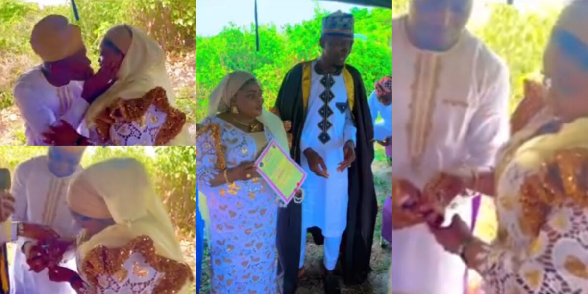 In the clip, Mama No Network and husband exchanged rings and kissed as friends and family of the couple cheered on them.