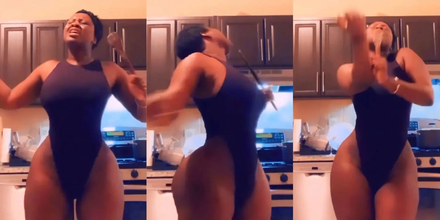 In this recent video, the actress wore a costume that revealed her figure and even her Vajayjay as she sang from her heart in the kitchen.