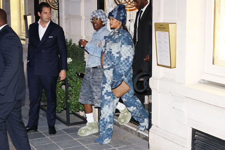 Rihanna and A$AP Rocky showed out in matching denim designer outfits in Paris as they supported Louis Vuitton’s newest Creative Director, Pharrell Williams, on his first campaign launch for the luxury brand.