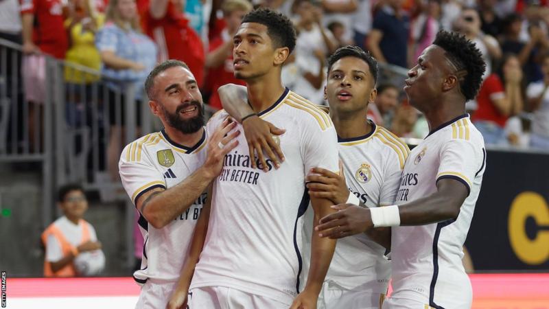 Real Madrid midfielder Jude Bellingham scored his first goal and was named man of the match in a 2-0 win over Manchester United in a pre-season friendly in Houston, Texas.
