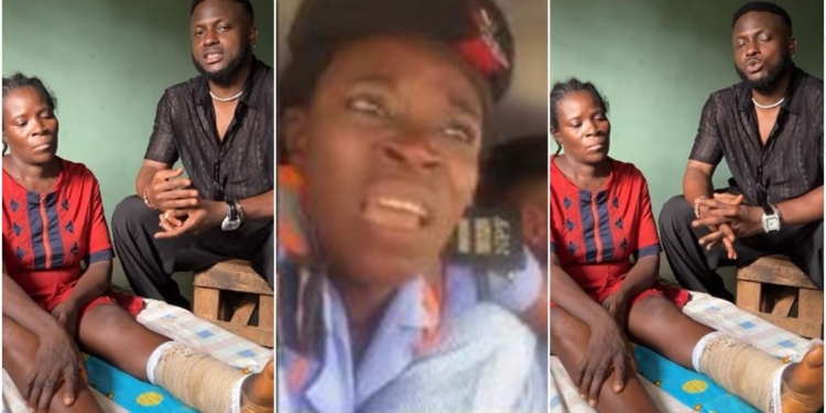 In a video posted on his Instagram page, the comedian is seen with the woman identified as Mrs Helen Otabhor who had a bandage on her leg.