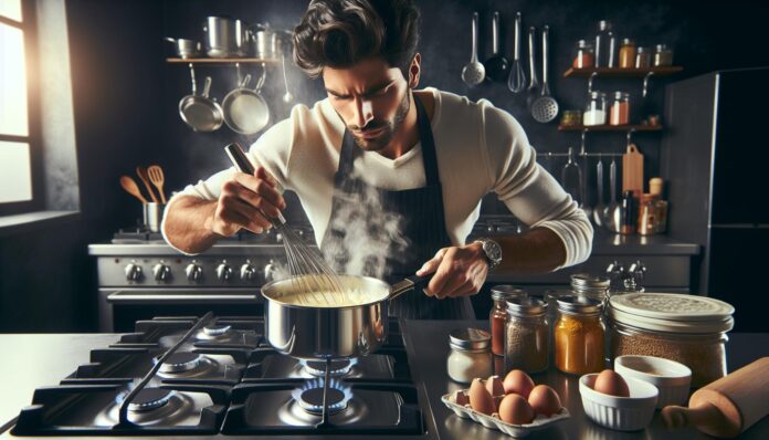 Next, I start by melting butter in a saucepan over low heat. Then, I whisk in flour to create a roux before adding milk slowly while continuing to whisk. Once the mixture thickens, I add in eggs while stirring constantly until the sauce reaches a creamy consistency. Finally, I season with salt and pepper to taste and stir in any optional ingredients for a personalized touch.