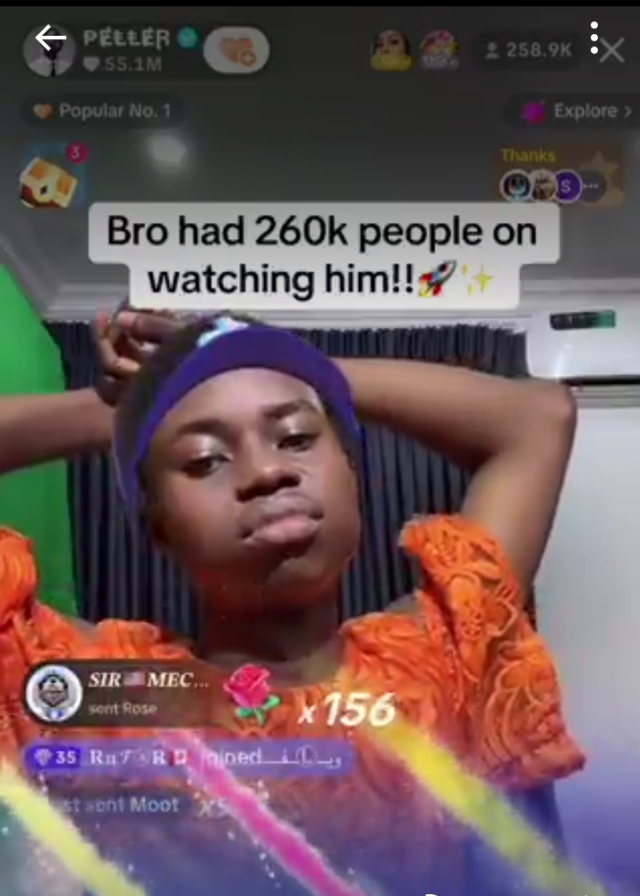 Popular TikTok star Peller has made history by hosting Africa’s most-watched TikTok live stream, amassing over 260,000 concurrent viewers.