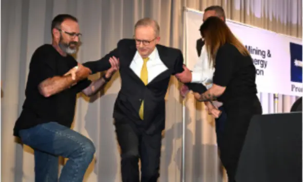 The incident occurred at the Mining and Energy Union Conference in New South Wales, where the 62-year-old leader was posing for photos after his speech.