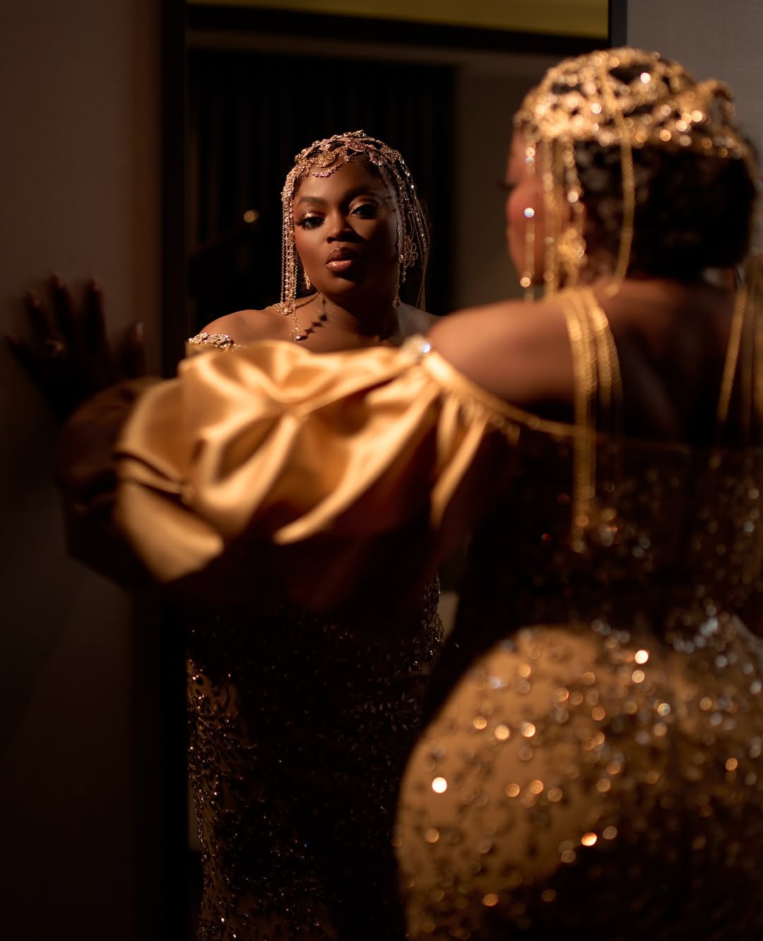 “Queen Mother said, ‘Go gold or go home,’ so I obeyed,” Funke captioned the post, showcasing her radiant look.