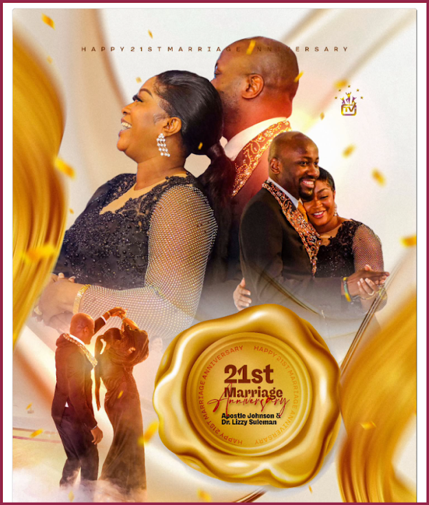 Popular Nigerian clergyman, Apostle Johnson Suleman, and his wife Lizzy are marking a major milestone as they celebrate their 21st wedding anniversary.