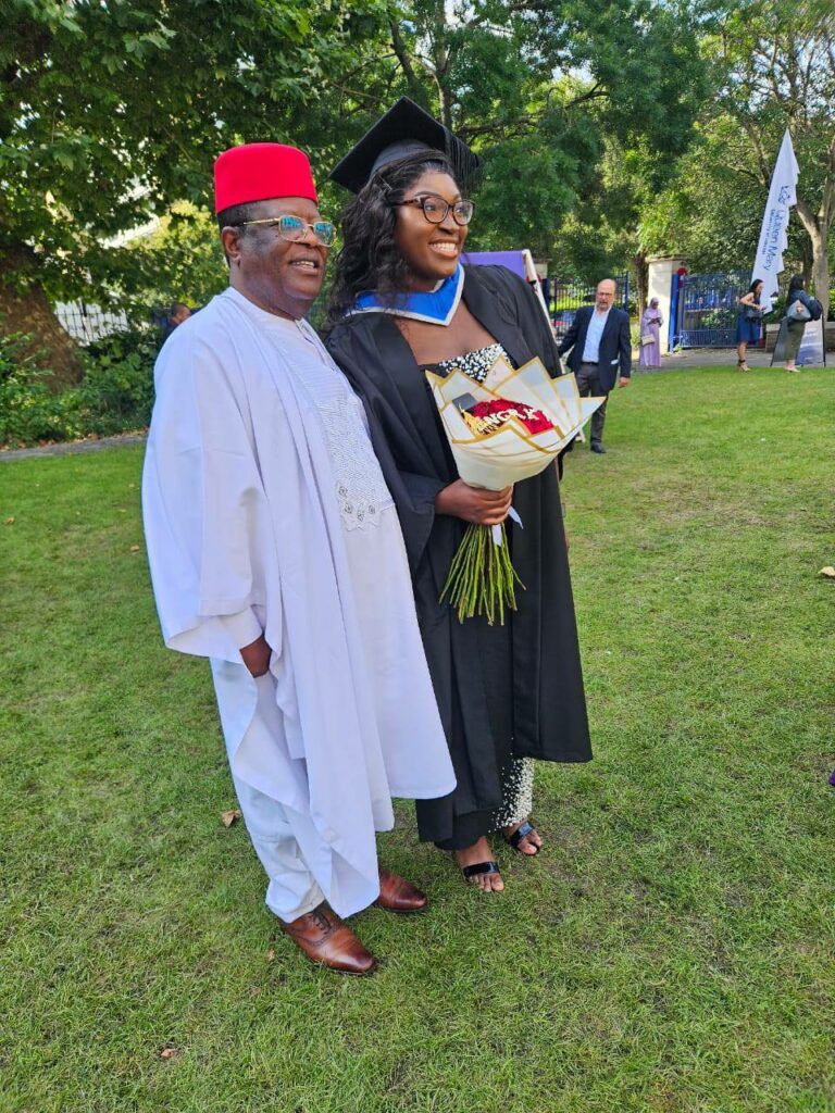 Kimberly Olanma Nweze, daughter of Nigeria’s Minister of Works, Senator David Umahi, has achieved an academic milestone by graduating with First Class Honours in Robotics Engineering from Queen Mary University of London.