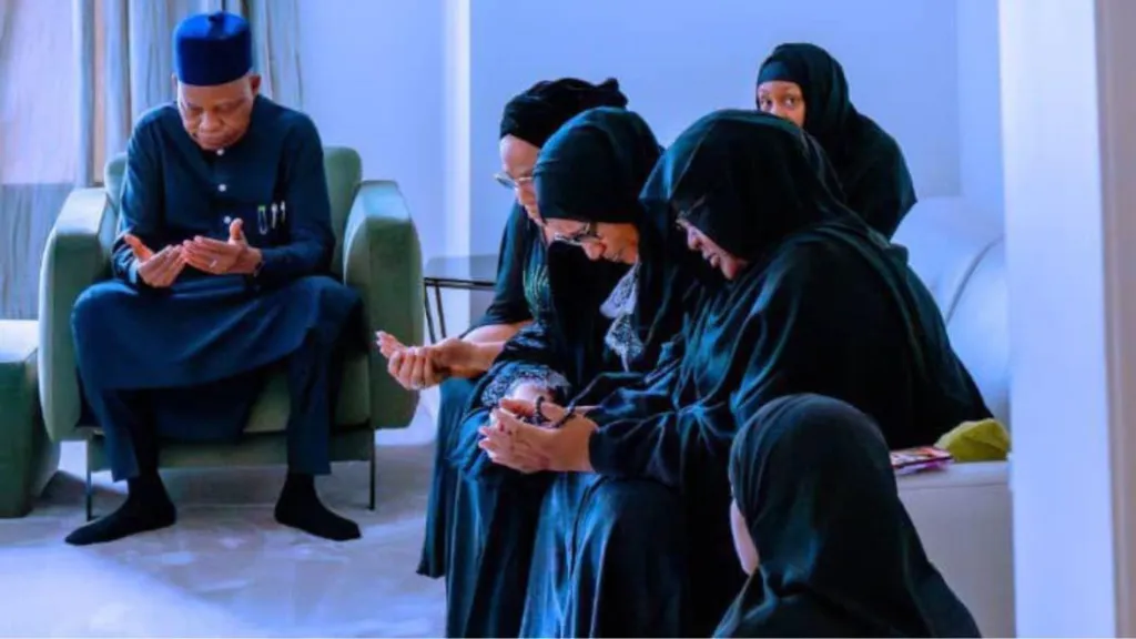 Photos from the visit show Shettima consoling a visibly grieving Aisha Buhari and other family members as arrangements for the return of Buhari’s body to Nigeria continue.