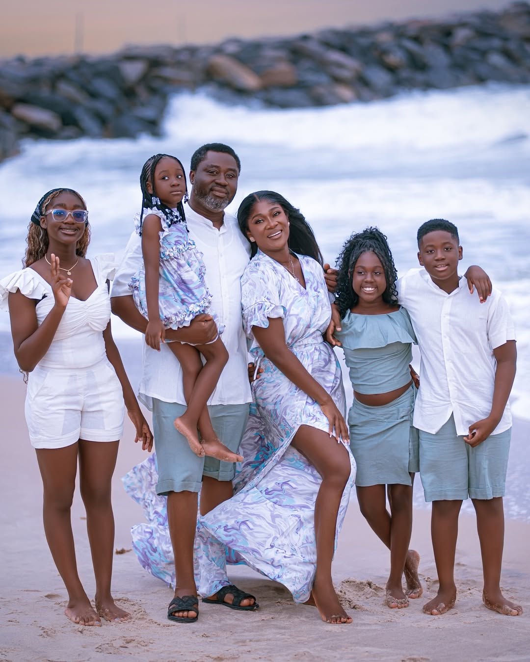 The actress took to Instagram to mark her 14th wedding anniversary with her husband, Prince Odi Okojie, sharing heartwarming family portraits featuring their four children.