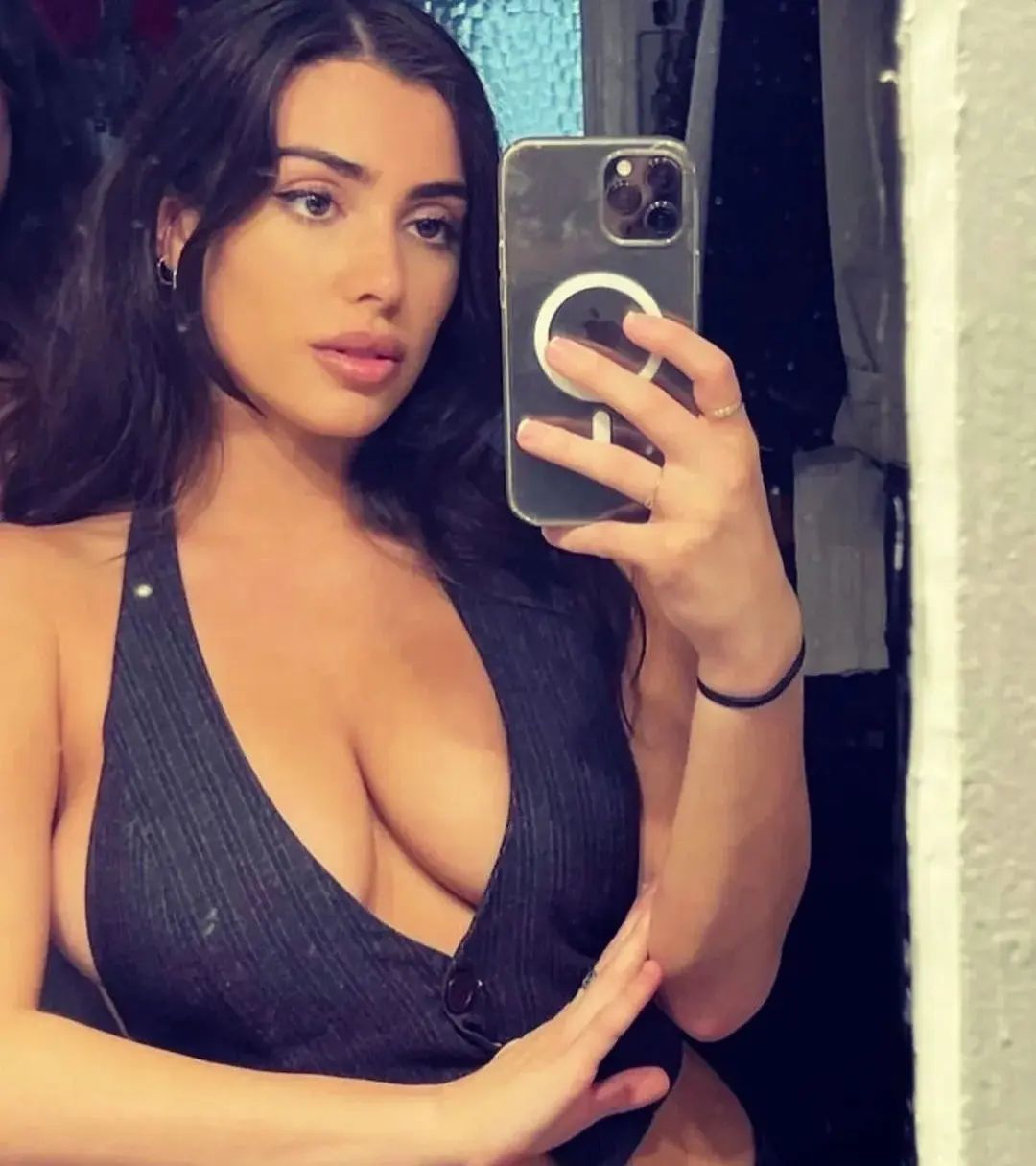 In the teaser images, Bianca modeled several lingerie pieces herself, capturing the photos with her phone in front of a mirror rather than using a professional photographer. The designs, which feature a retro, structured aesthetic, appear to cater to fuller bust sizes — fitting for her reported 32G cup.