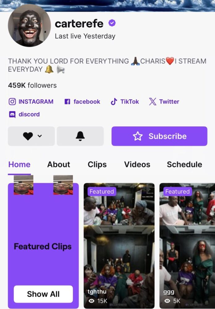 During the downtime, Carter Efe turned to YouTube to maintain engagement with his audience, continuing his live streams without interruption.