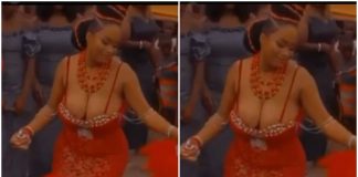 The social media world is currently buzzing as a bride decides to take all the spotlight on her wedding by rocking a cleavage-revealing outfit.
